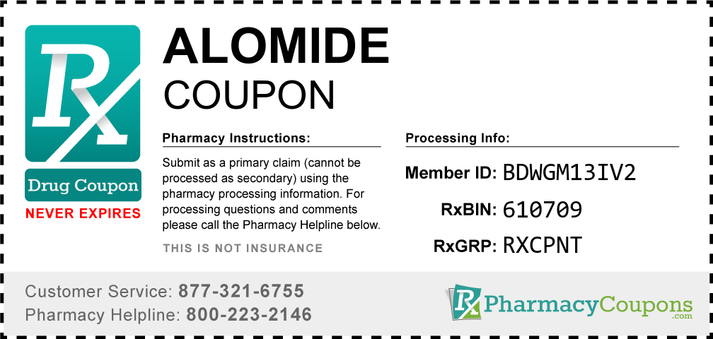 Simply bring the coupon below to the pharmacy, and save on Alomide at CVS, Walgreens, Publix, Safeway, Albertsons, Rite Aid, Target, and many other drug stores! These coupons are free and can be used to save up to 80% on all medications.