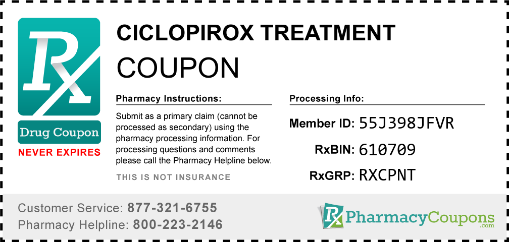 Simply bring the coupon below to the pharmacy, and save on Ciclopirox treatment at CVS, Walgreens, Publix, Safeway, Albertsons, Rite Aid, Target, and many other drug stores! These coupons are free and can be used to save up to 80% on all medications.