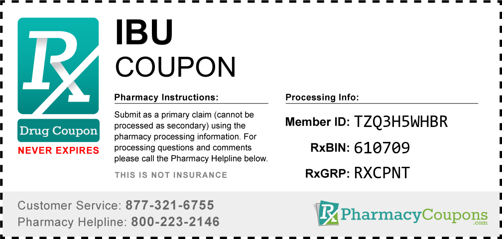 Simply bring the coupon below to the pharmacy, and save on Ibu at CVS, Walgreens, Publix, Safeway, Albertsons, Rite Aid, Target, and many other drug stores! These coupons are free and can be used to save up to 80% on all medications.