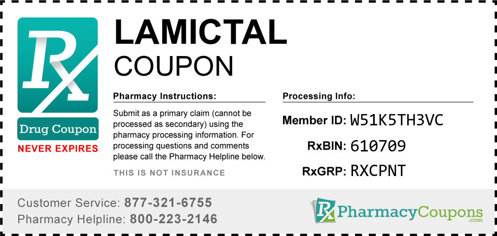 Simply bring the coupon below to the pharmacy, and save on Lamictal at CVS, Walgreens, Publix, Safeway, Albertsons, Rite Aid, Target, and many other drug stores! These coupons are free and can be used to save up to 80% on all medications.