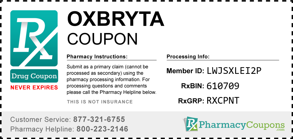 Simply bring the coupon below to the pharmacy, and save on Oxbryta at CVS, Walgreens, Publix, Safeway, Albertsons, Rite Aid, Target, and many other drug stores! These coupons are free and can be used to save up to 80% on all medications.