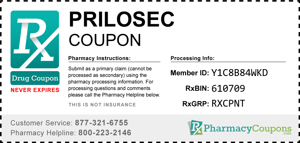 Simply bring the coupon below to the pharmacy, and save on Prilosec at CVS, Walgreens, Publix, Safeway, Albertsons, Rite Aid, Target, and many other drug stores! These coupons are free and can be used to save up to 80% on all medications.