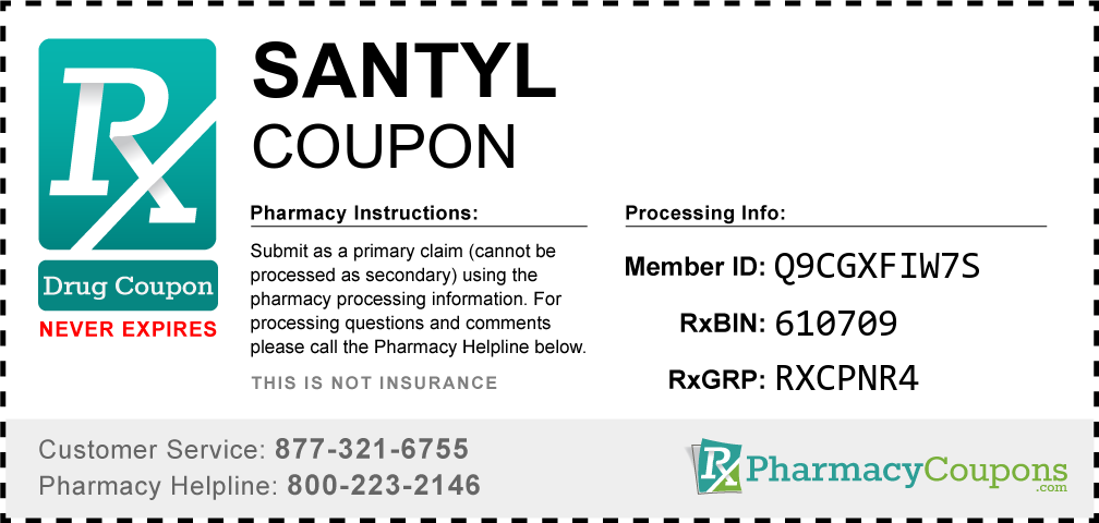 Simply bring the coupon below to the pharmacy, and save on Santyl at CVS, Walgreens, Publix, Safeway, Albertsons, Rite Aid, Target, and many other drug stores! These coupons are free and can be used to save up to 80% on all medications.